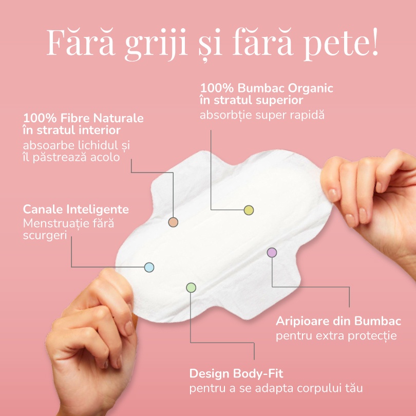 Absorbante de noapte din bumbac organic, 8 bucati, Enroush