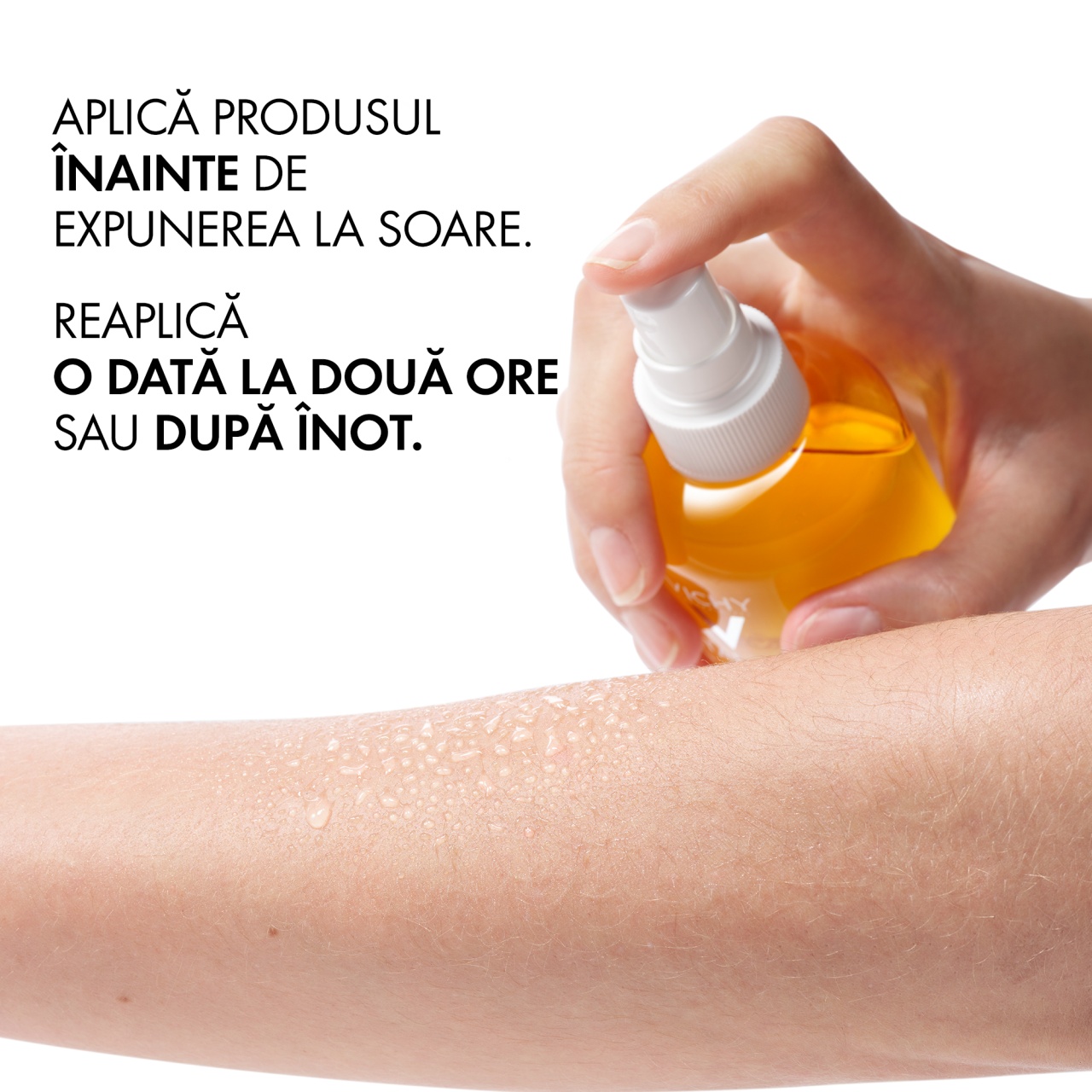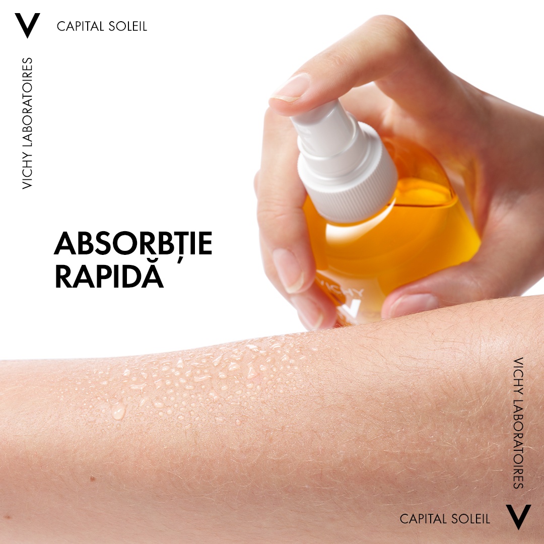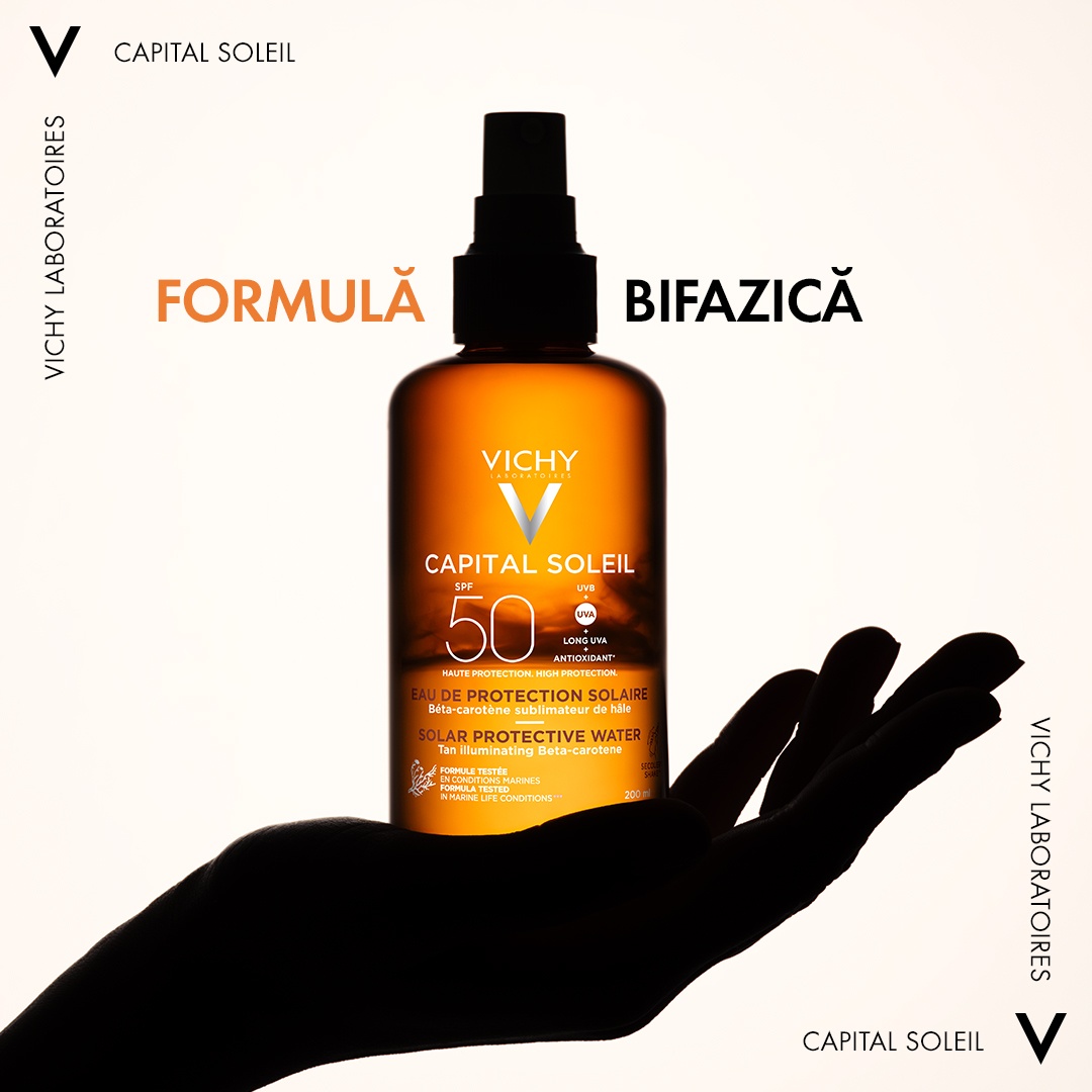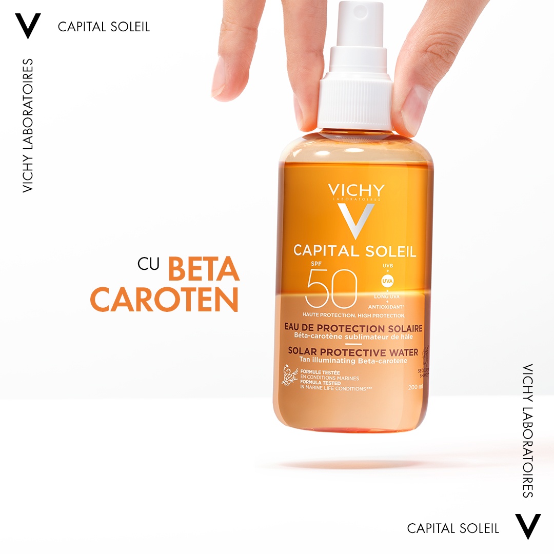Apa cu protectie solara SPF 50 cu beta-caroten pentru fata si corp Capital Soleil, 200 ml, Vichy