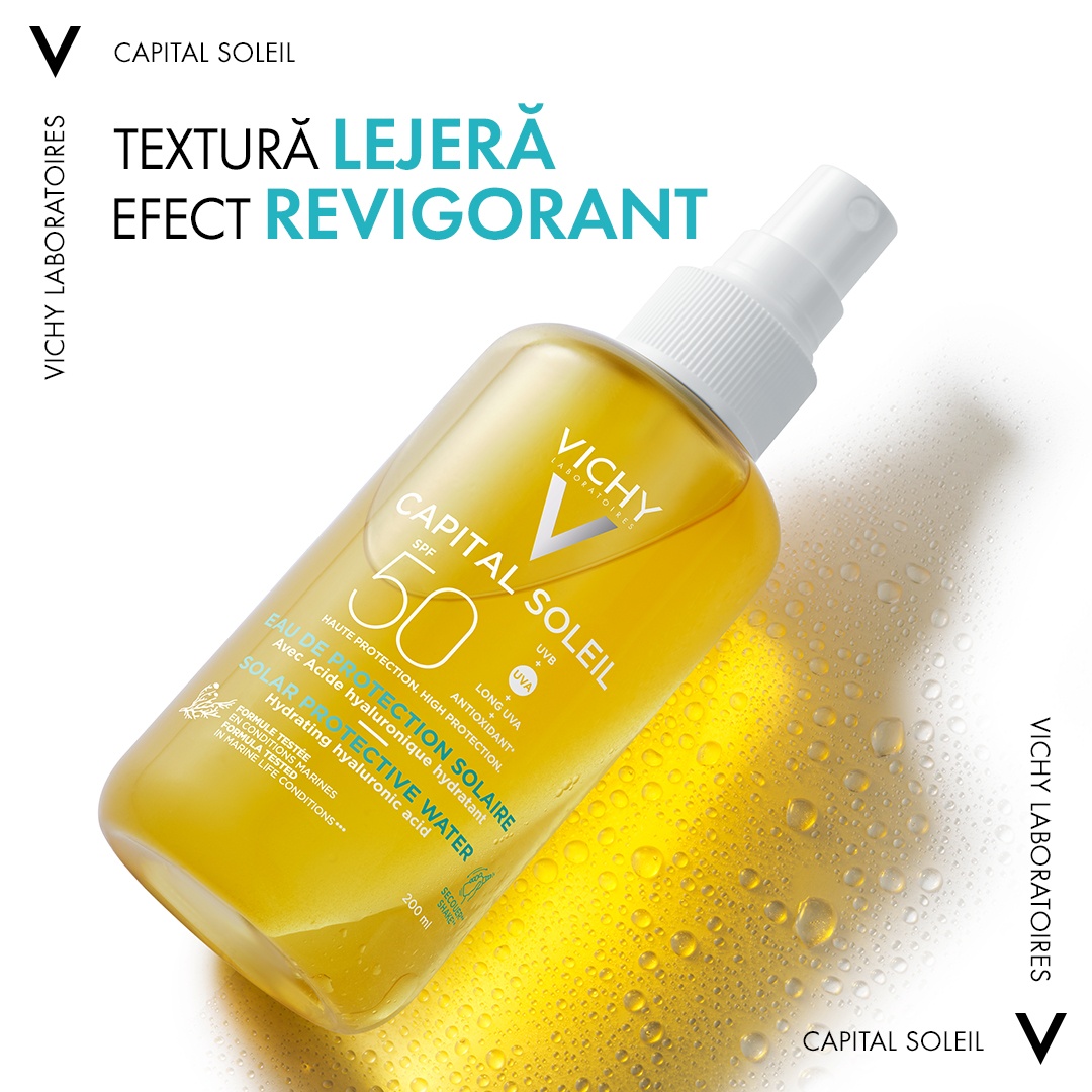 Apa cu protectie solara SPF 50+ pentru fata si corp Capital Soleil, 200 ml, Vichy
