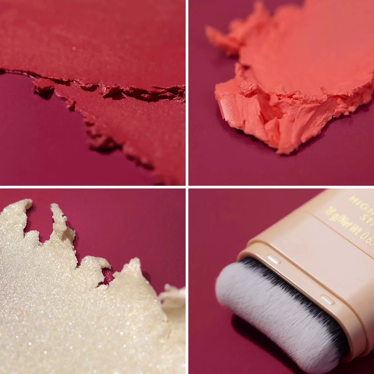 • Pentru aplicare, zâmbește și aplică stick-ul direct pe pomeți, blenduind produsul spre linia părului pentru un efect natural.