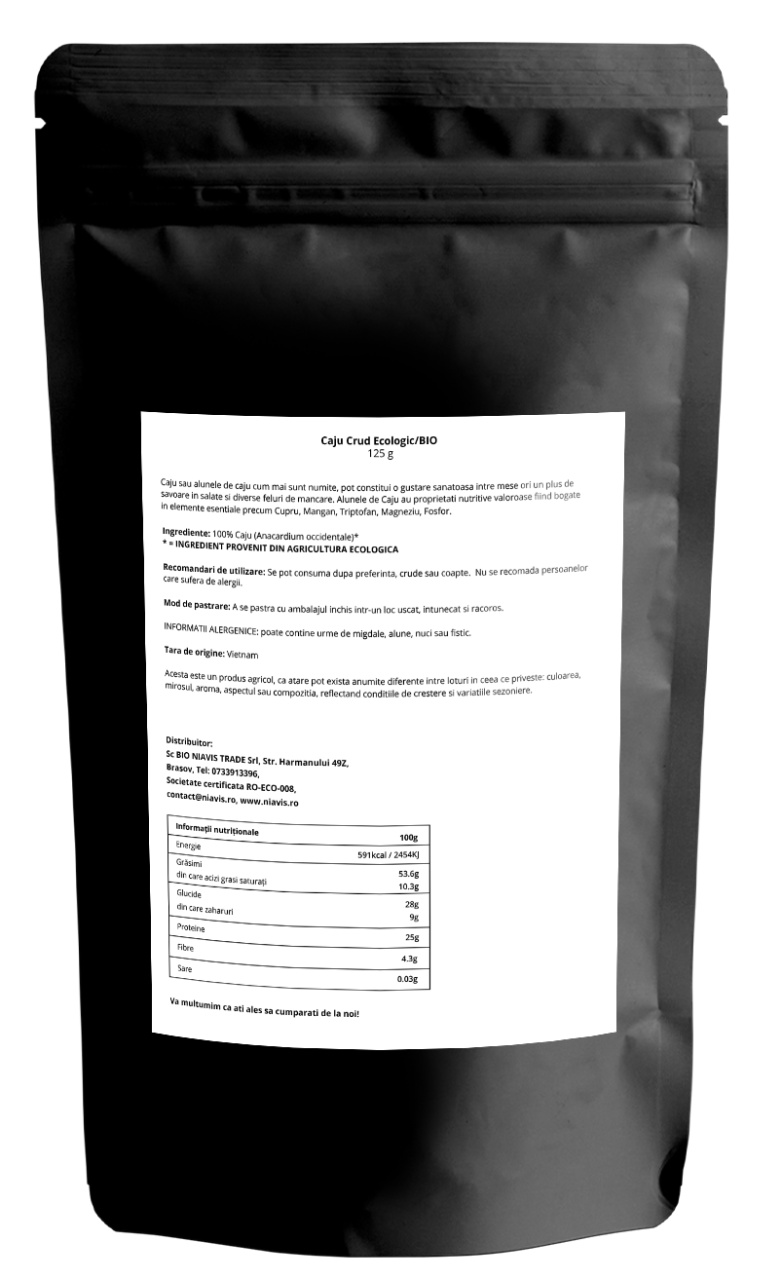 • Ambalaj practic: Punga de 125g este ușor de folosit și de depozitat, păstrând caju crud proaspăt și gata de utilizare.