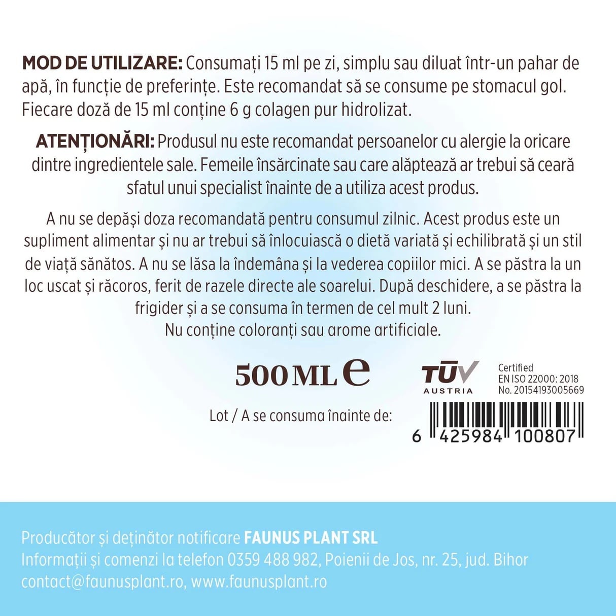 Prezentare:Flacon cu 500 ml colagen lichid.