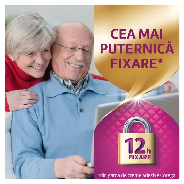 Proprietati:Acesta este un dispozitiv medical.Noua Corega Max Fixare+Confort este conceputa pentru a asigura confort si pentru fixarea protezelor dentare totale sau partiale pe durata intregii zile. Ajuta la absorbtia presiunii data de acestea datorita formarii unui strat amortizor intre proteza si gingie. Aplicatorul de precizie permite aplicarea controlata a unei cantitati optime de crema adeziva Corega.