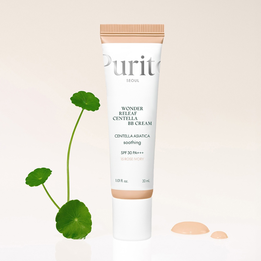 Crema BB multifunctionala cu SPF 30 PA+++ Nuanta 15 Rose Ivory Wonder Releaf Centella, 30 ml, Purito