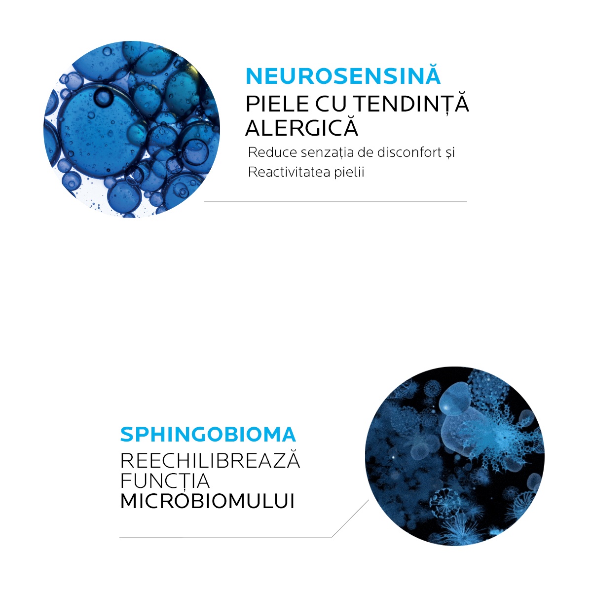 Ingrediente active:Sphingobioma, o fracție probiotică obținută dinc apa termală La Roche-Posay, ce ajută la echilibrarea microbiomului în această formulă concepută să reducă riscul de reacții ale pielii. Neurosensină, reduce senzaţia de disconfort. Reduce sensibilitatea şi reactivitatea pielii.