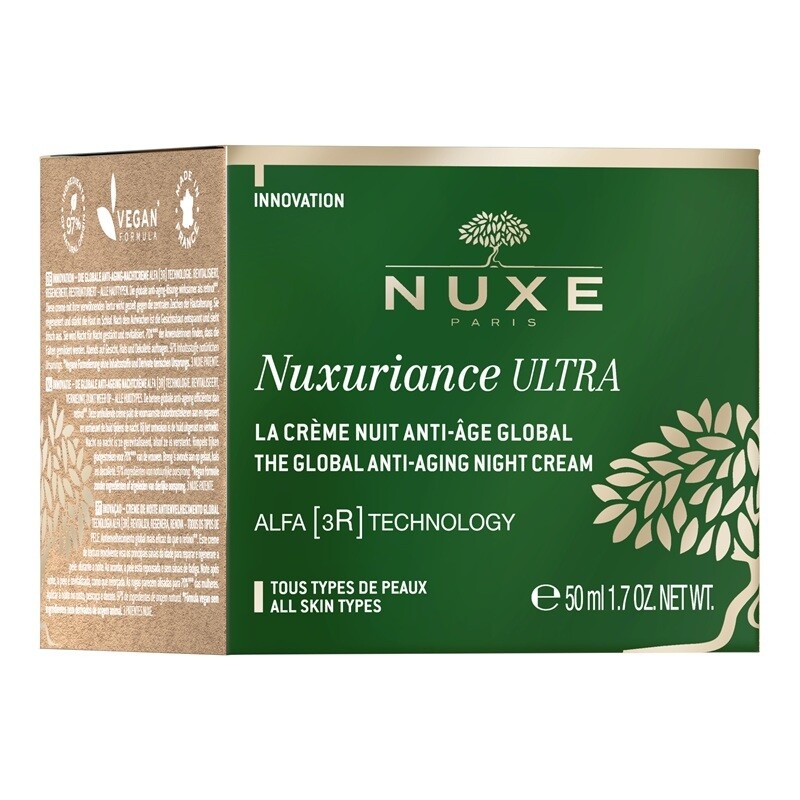 FORMULARezultatul mai multor ani de cercetari stiintifice desfasurate de laboratorul NUXE, gama Nuxuriance Ultra impinge limitele anti-imbatranire cu inovatie de ultima ora.In centrul formulelor, noua TEHNOLOGIE ALFA [3R] este un trio puternic de ingrediente active antirid mai eficiente decat Retinolul: