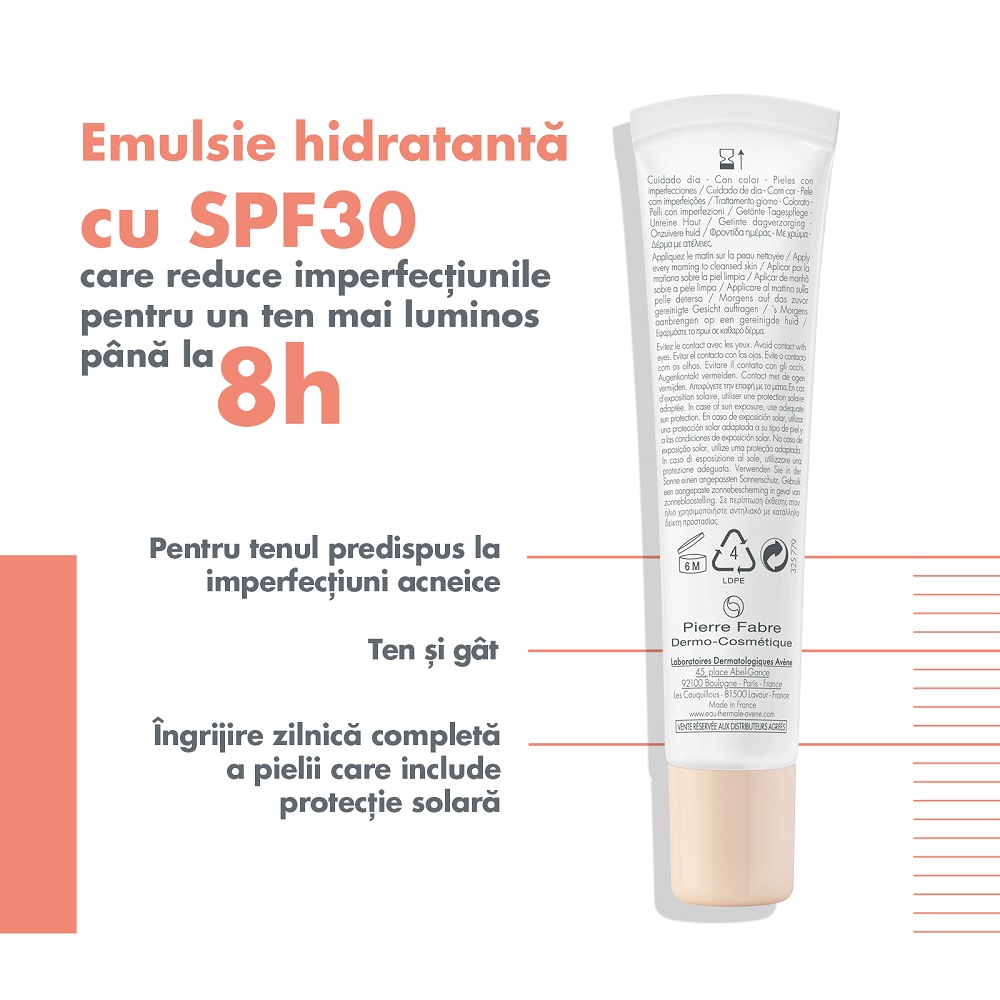 Emulsie de zi nuantatoare cu SPF30 Cleanance Women, 40ml, Avene