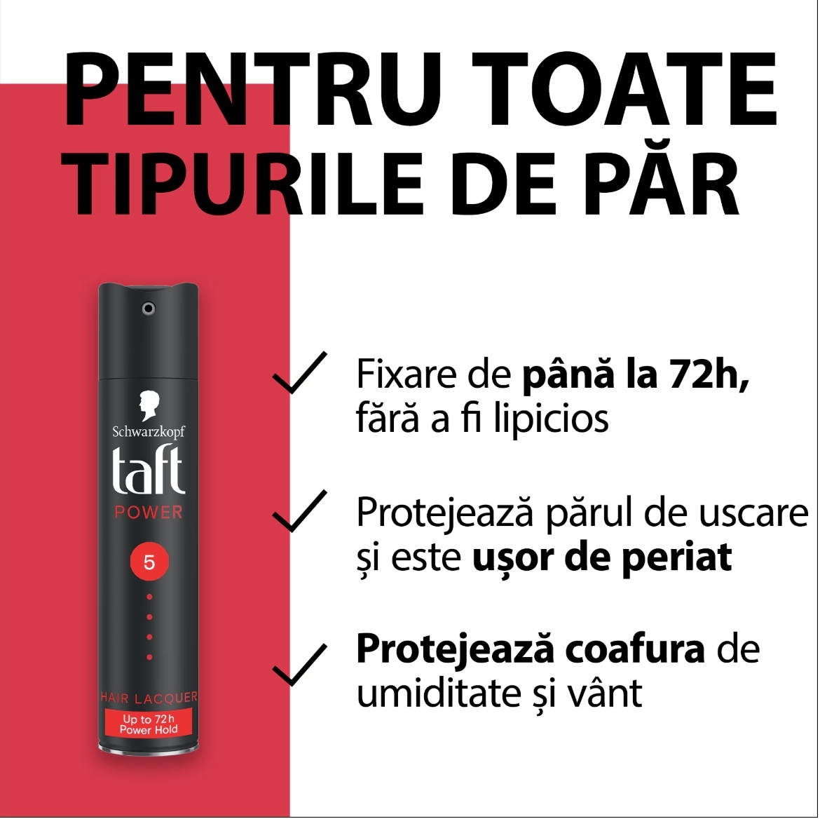 Taft Power nr. 5 este un produs esențial pentru coafurile care necesită o susținere maximă și rezistență de nezdruncinat. Formula sa avansată oferă o fixare de până la 72 de ore, fiind special concepută pentru a menține părul puternic și controlat de la rădăcină până la vârfuri. Indiferent de condițiile meteorologice, acest fixativ protejează coafura fără a lăsa reziduuri vizibile și fără a încărca inutil firul de păr.