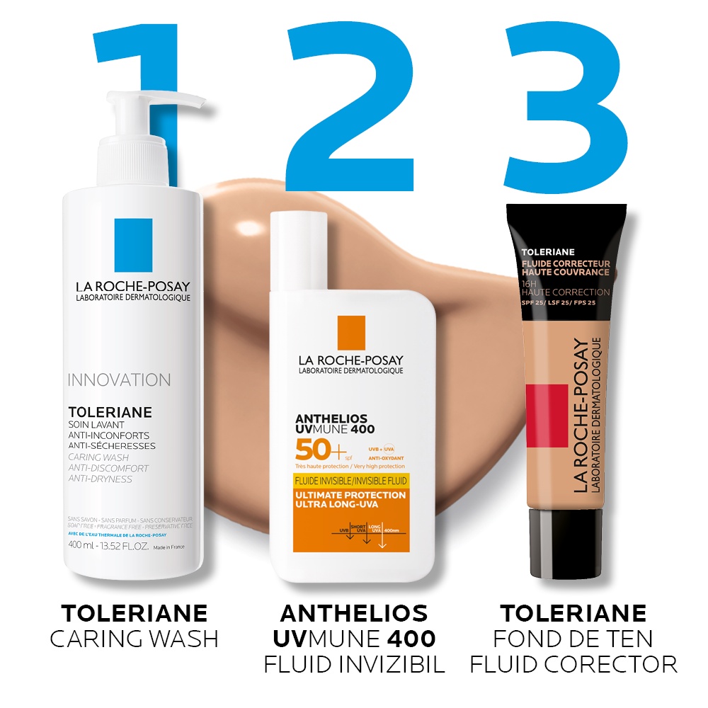 Fond de ten fluid corector cu SPF 25 pentru piele sensibila Nuanta 10 Toleriane, 30 ml, La Roche-Posay