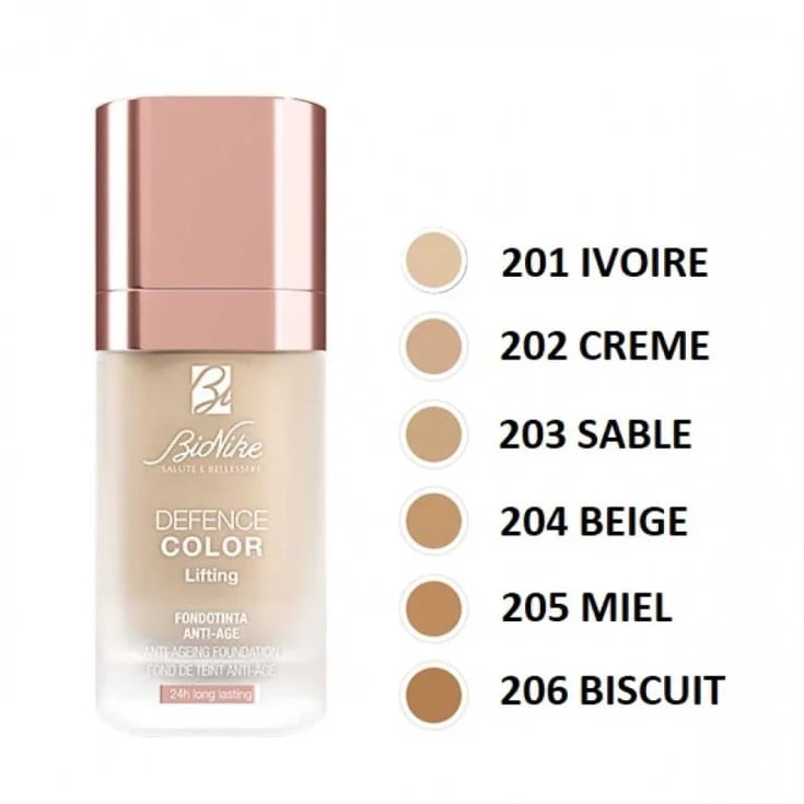 Fond de ten lichid cu efect de lifting Defence Color Anti-Age, 203 Sable, 30ml, Bionike