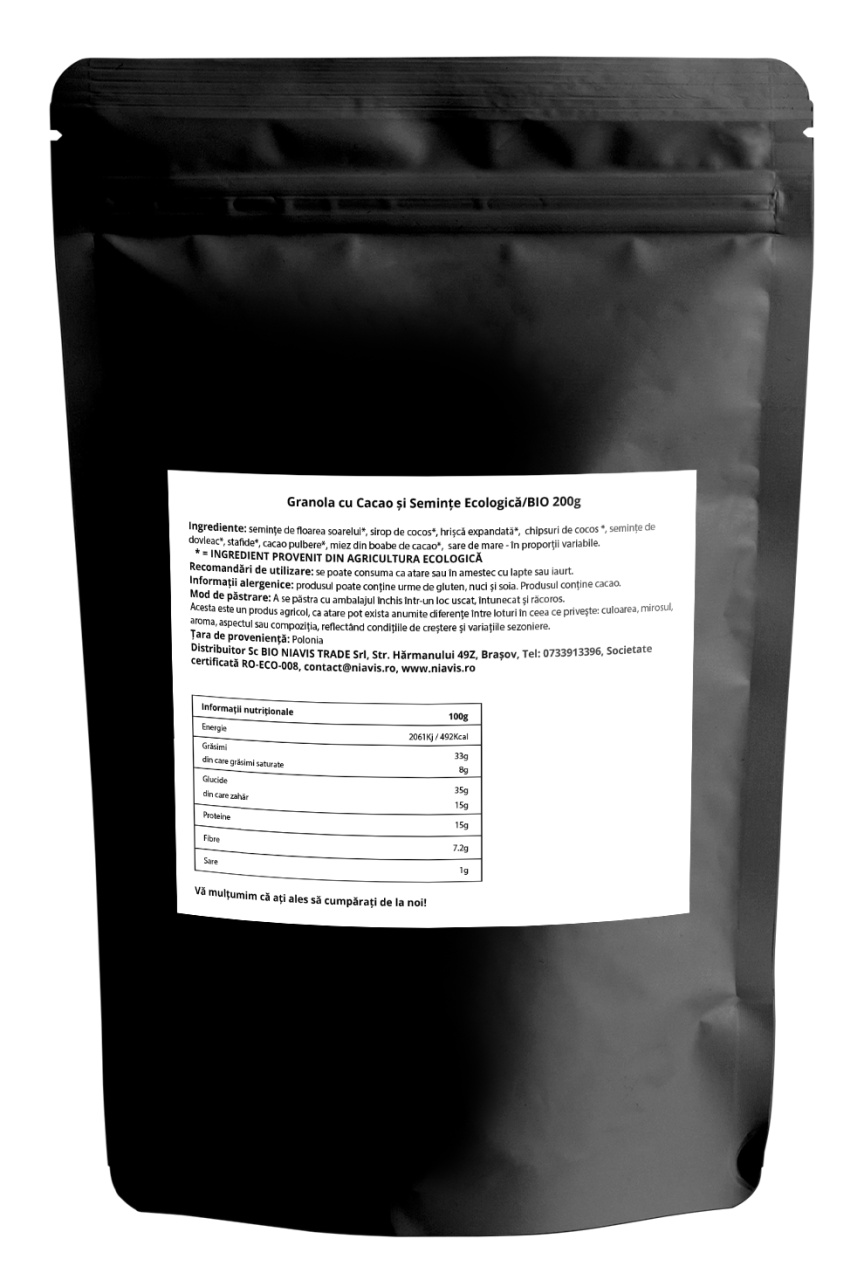 Granola cu Cacao si Seminte Ecologica/BIO, 200 g, Niavis