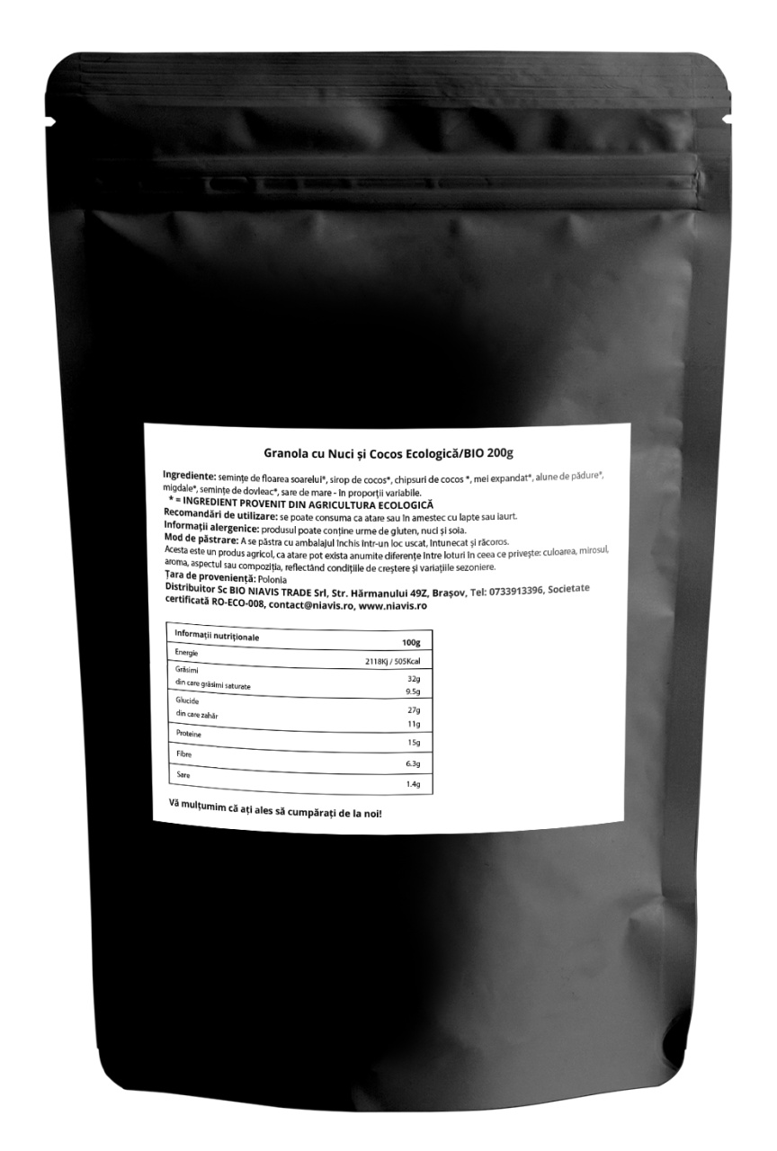 Descoperiți granola cu nuci și cocos ecologică de la Niavis, o combinație delicioasă și nutritivă pentru un mic dejun sau o gustare sănătoasă. Realizată din ingrediente de cea mai înaltă calitate, toate cultivate ecologic, această granola oferă un amestec perfect de crocant și aromă, fiind ideală pentru cei care doresc să adopte un stil de viață sănătos și echilibrat.