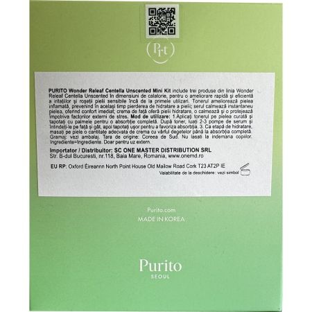 Kit Mini Centella Unscented line Toner, 30ml + Ser, 15ml + Crema de fata, 12ml, Purito