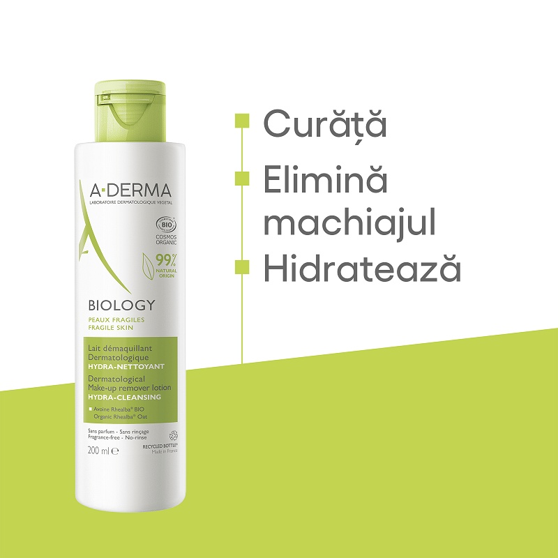 Lapte demachiant hidratant Biology, 200ml, A-Derma
