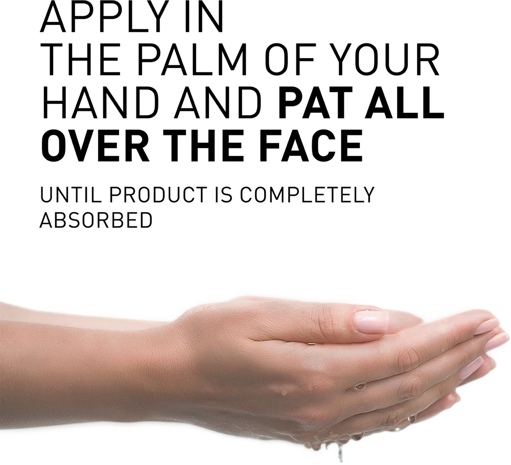Mod de utilizare: Aplicați dimineața și/sau seara, direct cu palmele pe pielea curată a feței și gâtului, fără a clăti.