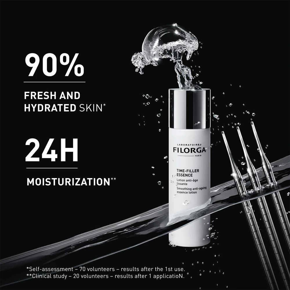 Filorga Time-Filler Essence este o loțiune tonică anti-îmbătrânire de nouă generație, formulată pentru a rehidrata intens, a netezi pielea și a-i reda luminozitatea naturală, pregătind-o ideal pentru rutina zilnică de îngrijire.