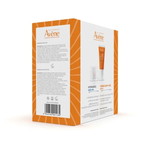 Pachet Aqua-Gel hidratant Hydrance 50ml + Crema anti-age cu SPF50+ 50ml, Avene