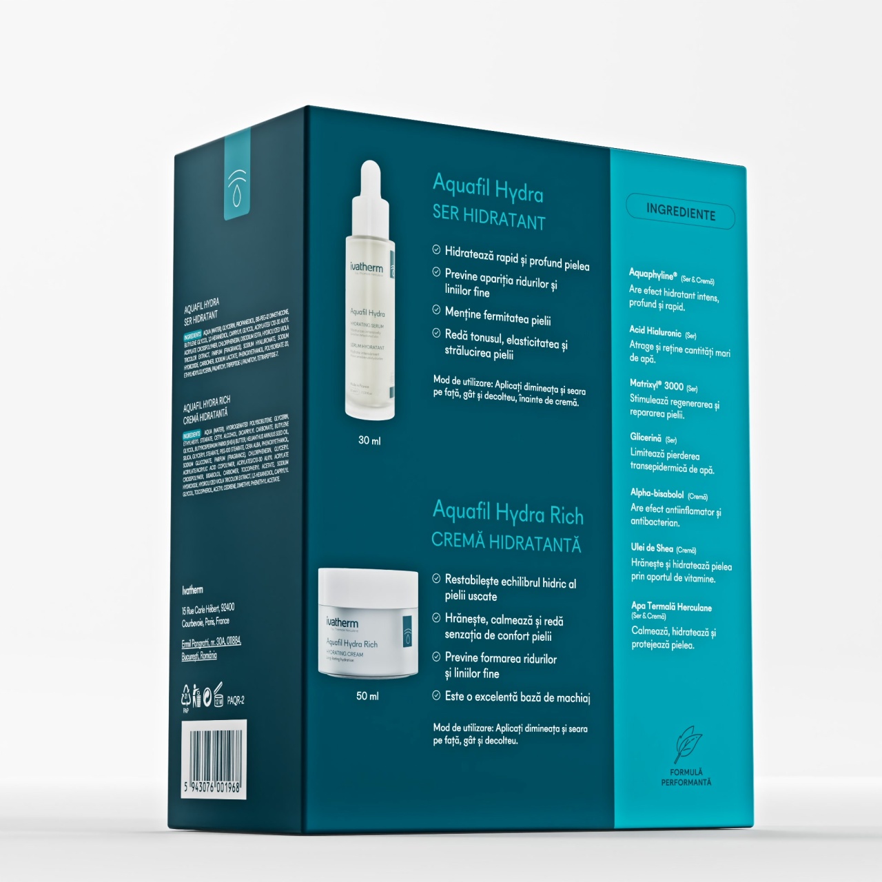 Pachet Ser Aquafil Hydra 30 ml + Cremă Aquafil Hydra Rich 50 ml, Ivatherm