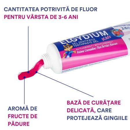 Pasta de dinti pentru copii cu aroma de fructe de padure 3-6 ani, 50 ml, Elgydium Kids
