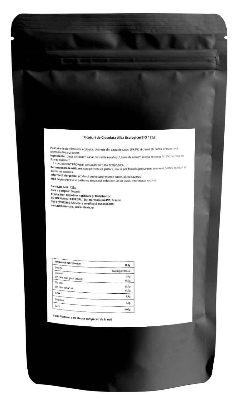 Picaturi de ciocolata alba Ecologice/BIO 125g, Niavis