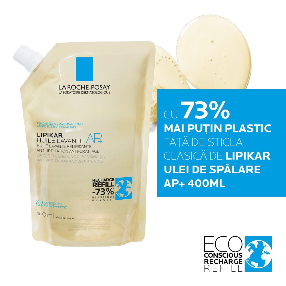 Rezervă Eco Ulei de Spălare Relipidant Lipikar AP+ 400 ml, La Roche-Posay