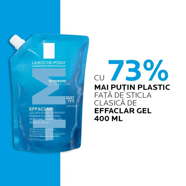 Rezerva Gel spumant de curatare purifiant pentru ten gras cu tendinta acneica Effaclar +M, 400 ml, La Roche-Posay
