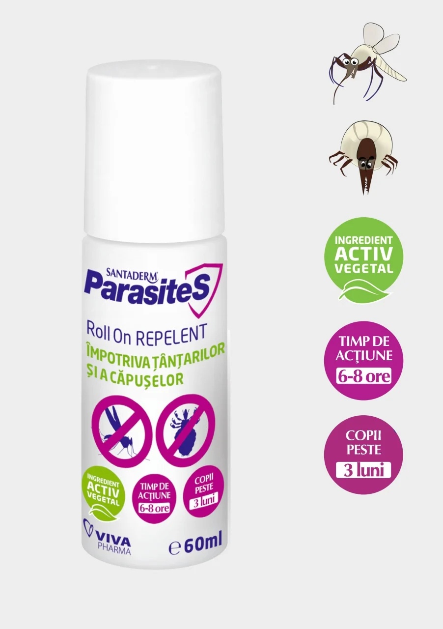 Roll-on repelent impotriva tantarilor si capuselor Parasites Santaderm, 60 ml, Viva Pharma