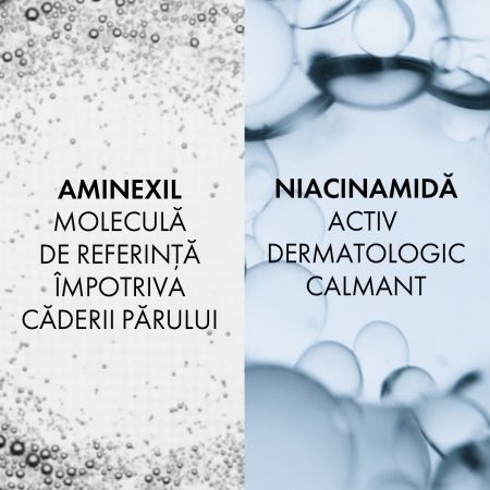 Ingrediente active:Sinergie puternică a activelor dermatologice într-o formulă foarte puternică.Aminexil: moleculă de referință împotriva căderii părului.Niacinamida: activ dermatologic calmant.