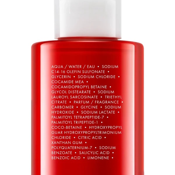 AQUA / WATER / EAU • SODIUM C14-16 OLEFIN SULFONATE • GLYCERIN • SODIUM CHLORIDE • COCAMIDE MEA • COCAMIDOPROPYL BETAINE • GLYCOL DISTEARATE • SODIUM LAUROYL SARCOSINATE • TRIETHYL CITRATE • PARFUM / FRAGRANCE • CARBOMER • GLYCINE • SODIUM HYDROXIDE • SODIUM LACTATE • PALMITOYL TETRAPEPTIDE-7 • PALMITOYL TRIPEPTIDE-1 • COCO-BETAINE • HYDROXYPROPYL GUAR HYDROXYPROPYLTRIMONIUM CHLORIDE • CITRIC ACID • XANTHAN GUM • POLYQUATERNIUM-7 • SODIUM BENZOATE • SALICYLIC ACID • BENZOIC ACID • LIMONENE.