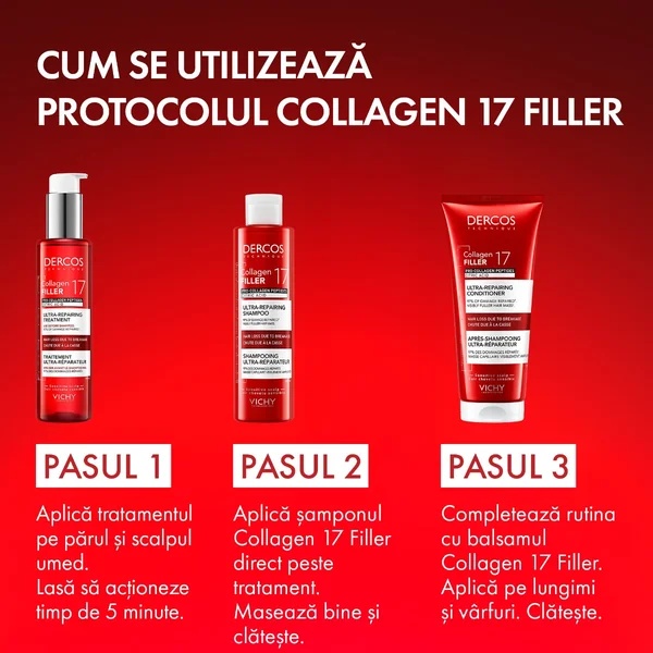 • PASUL 3. Completati rutina cu balsamul Collagen 17 Filler. Aplicati si clatiti.