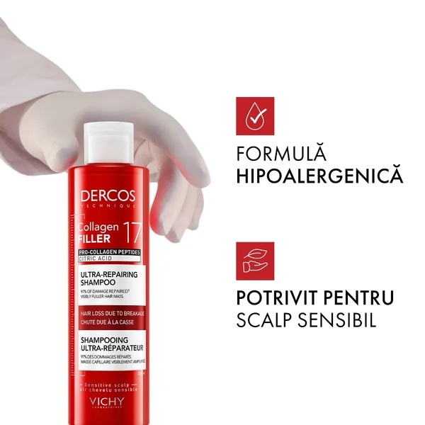 Sampon ultra-reparator pentru par deteriorat si fragil Dercos Collagen 17 Filler, 200ml, Vichy