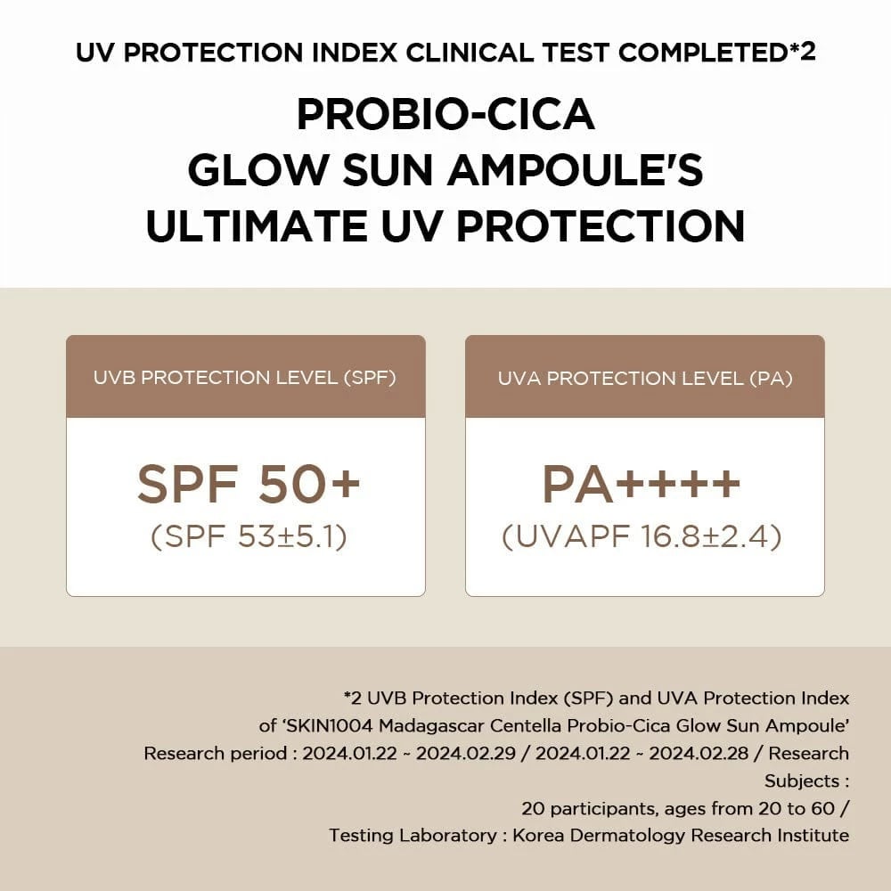 Ser cu protectie solara SPF 50+ PA++++ Centella Probio-Cica Glow Sun Ampoule, 50 ml, Skin1004
