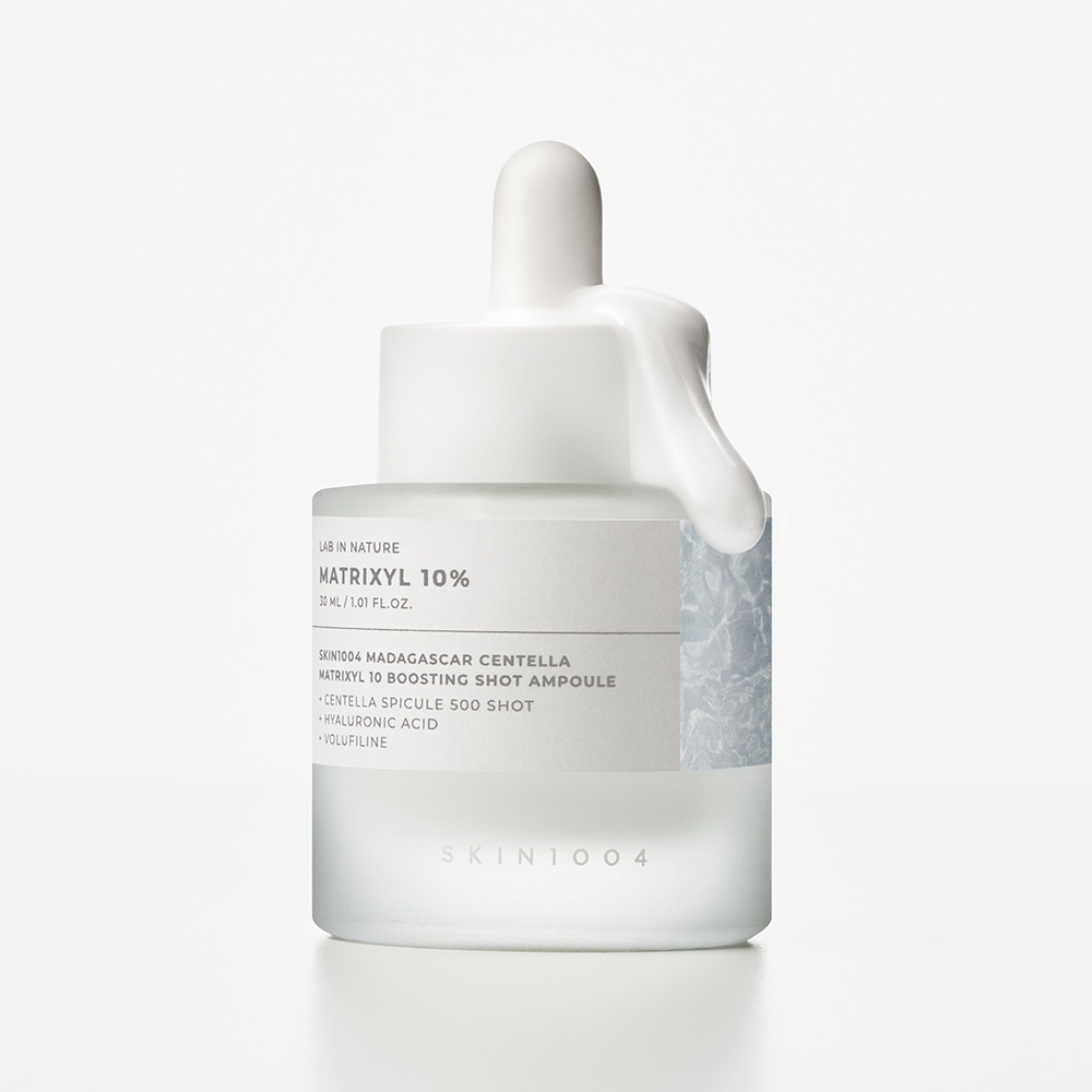 SKIN1004 Madagascar Centella Matrixyl 10 Boosting Shot Ampoule este un ser hidratant cu acțiune intensivă, creat special pentru a revitaliza tenul lipsit de vitalitate, uscat sau cu linii fine vizibile. Formula sa avansată acționează pentru a reda pielii suplețea și volumul, lăsând un contur mai ferm și o textură vizibil mai netedă, fără a lăsa o senzație lipicioasă.