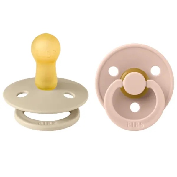 Set 2 Suzete Colour Latex, Tetină Rotundă, 6 luni+, Vanilla/Blush, Bibs