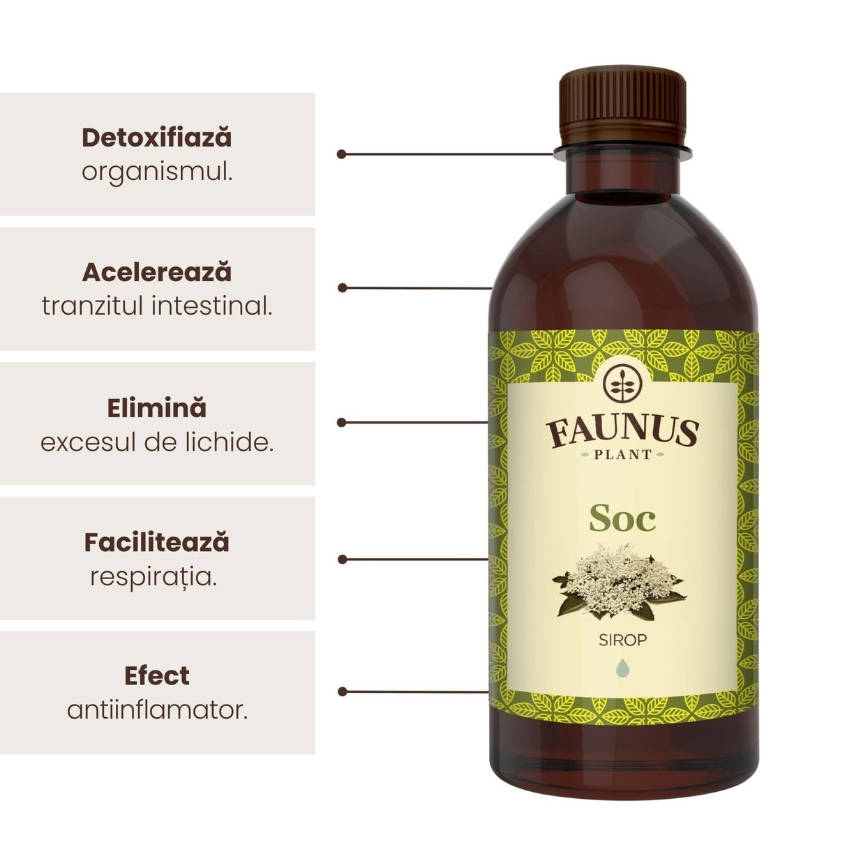 Prezentare:Flacon cu 500 ml sirop de soc, Faunus Plant.