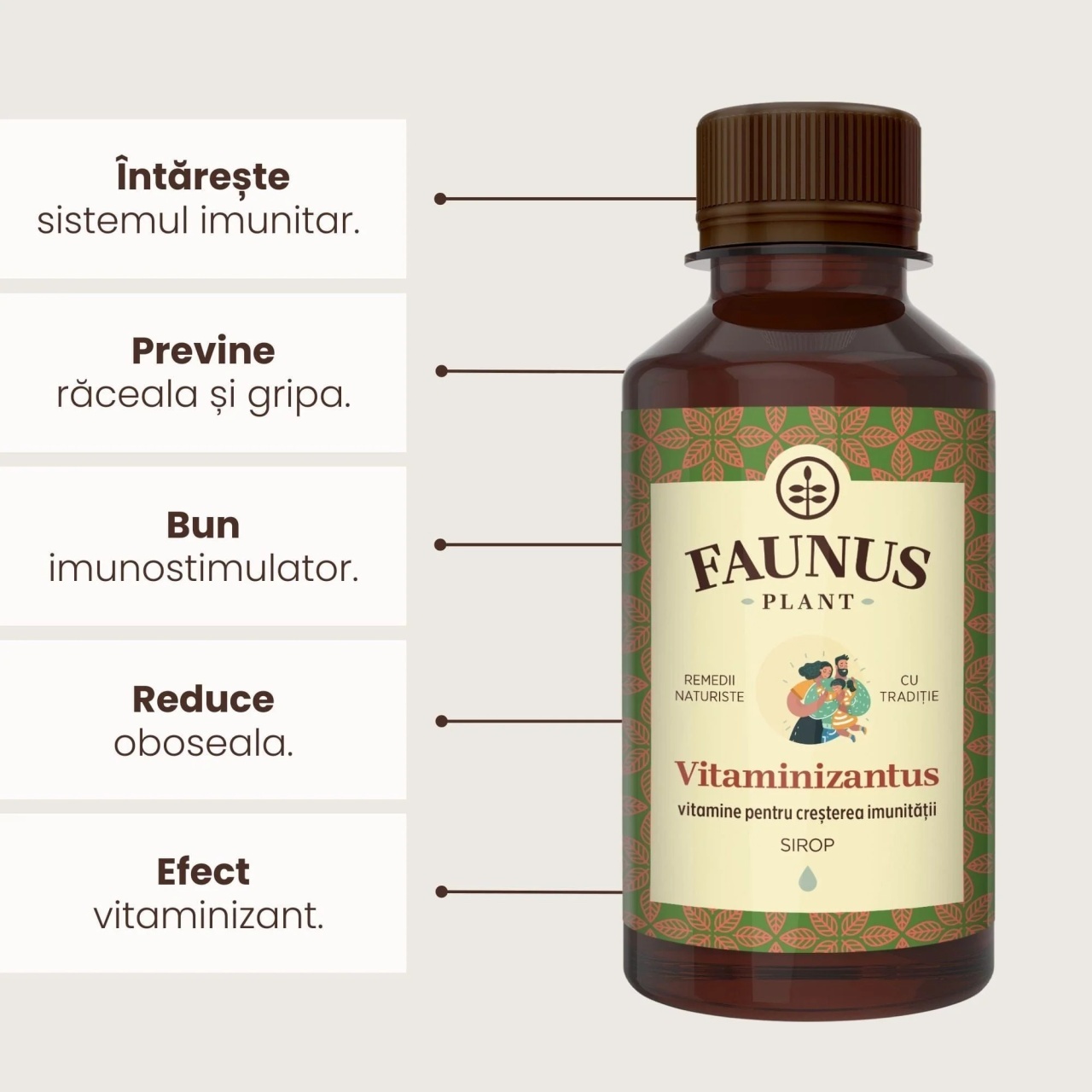 Prezentare:Flacon cu 200 ml Sirop Vitaminizantus, Faunus Plant.