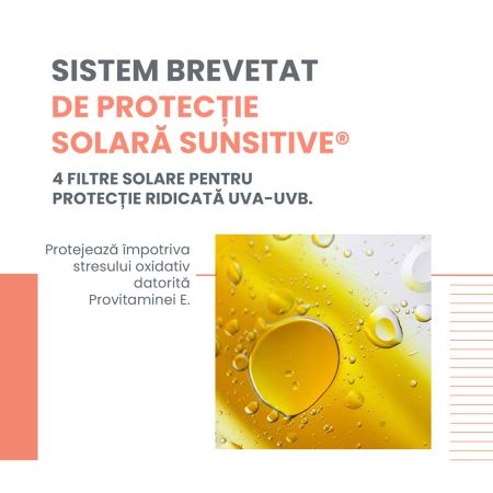 - protejeaza impotriva UVB, UVA si a radicalilor liberi cu sistemul de filtrare brevetat Sunsitive Protection;