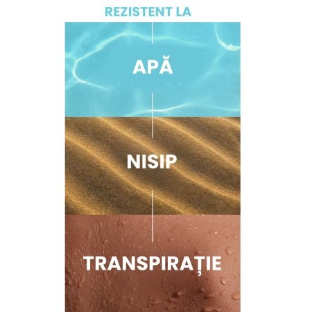 - foarte rezistent la apa si rezistent la nisip si transpiratie;