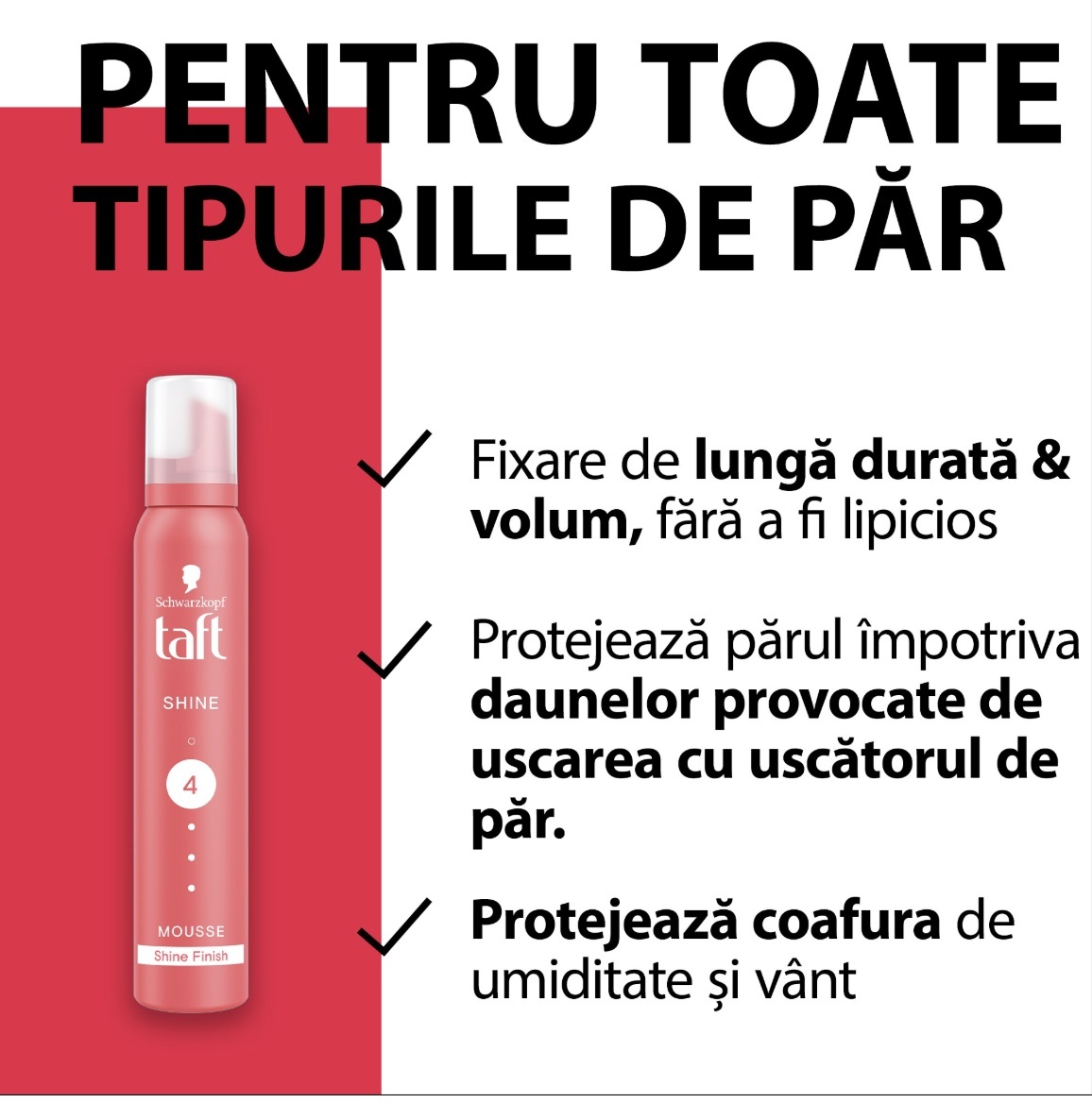 Taft Shine este produsul de styling ideal pentru obținerea unei coafuri pline de vitalitate, definită printr-o strălucire radiantă. Formula sa specială cu efect de laminare oferă părului un aspect mătăsos și reflexii spectaculoase, fiind soluția perfectă pentru părul tern sau lipsit de luciu. Această spumă asigură o fixare ultra-puternică, protejând în același timp structura firului de păr împotriva agresiunilor externe.