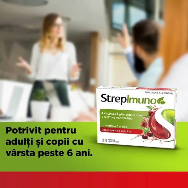 StrepImuno cu cirese, menta si coacaze fara zahar, 24 comprimate de supt, Reckitt