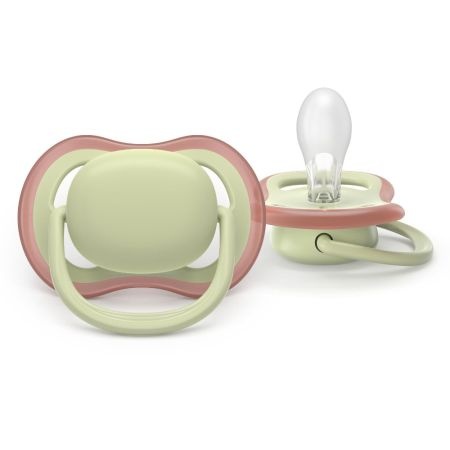 Prezentare:Set cu 2 suzete fosforescente Ultra Air Philips Avent, culoare verde.