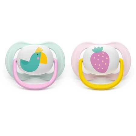 Suzete Ultra Air, Papagal/Căpșună, 0–6 luni, SCF080/24, 2 bucăți, Philips Avent