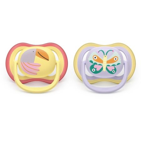 Prezentare:Set cu 2 suzete Ultra Air Philips Avent, modele Papagal și Fluture.