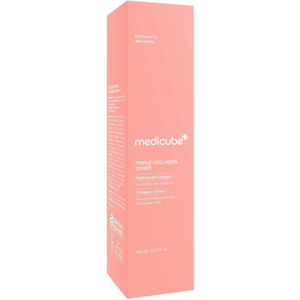 Triple Collagen Toner de la Medicube este o solutie inovatoare pentru hidratare profunda si revitalizarea pielii, oferind un efect de “glass skin” si stralucire naturala. Formula contine 10.000 ppm complex cu 3 tipuri de colagen (hidrolizat, atelo, solubil) si ingrediente active hidratante, care patrund rapid in piele, fara senzatie lipicioasa.