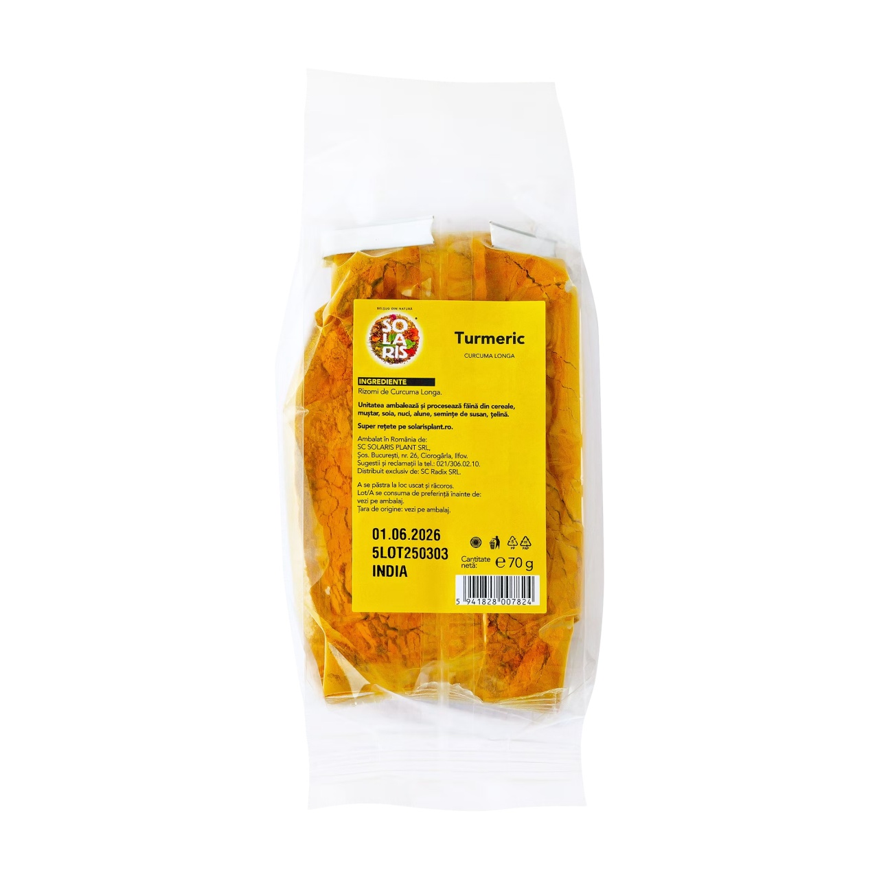 Ingrediente:Turmeric măcinat (Curcuma longa) – 100%.